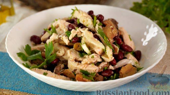 Салат "Чехия". САЛАТ С КУРИЦЕЙ, ФАСОЛЬЮ И ГРИБАМИ