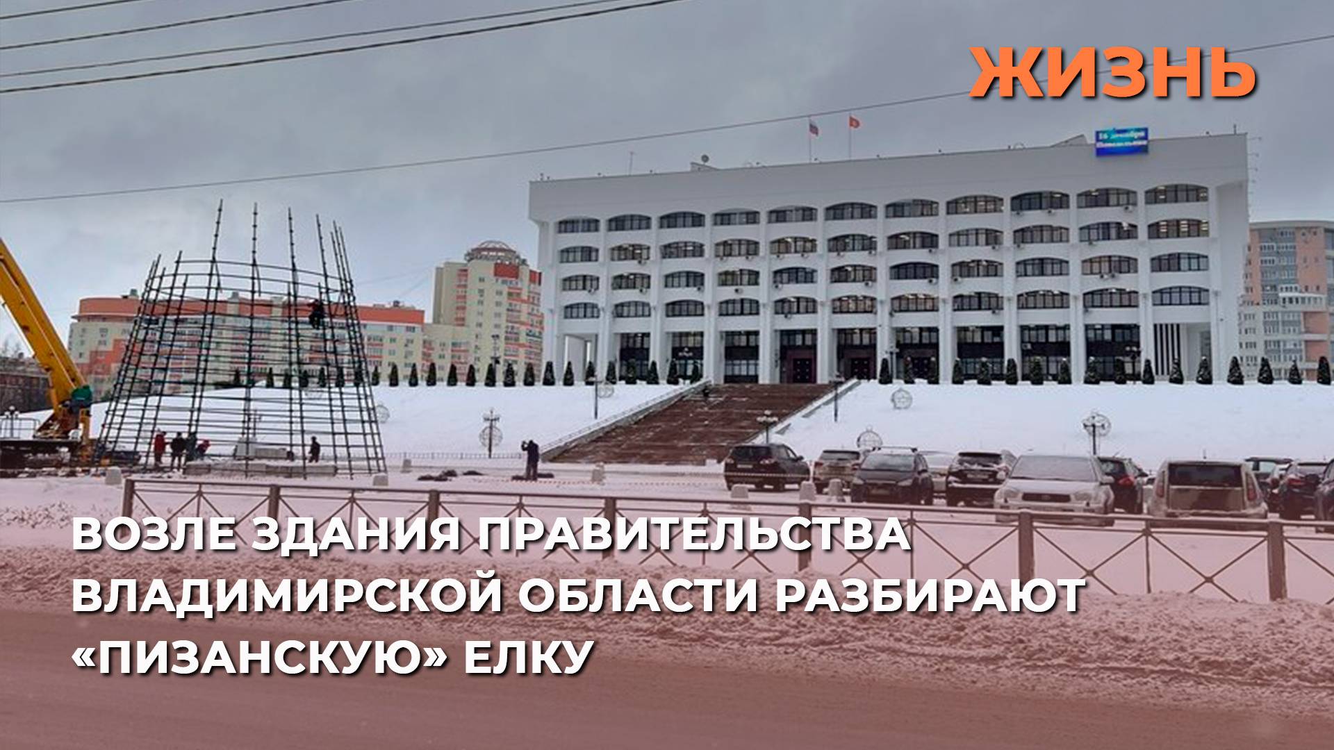Возле здания правительства Владимирской области разбирают «пизанскую» елку