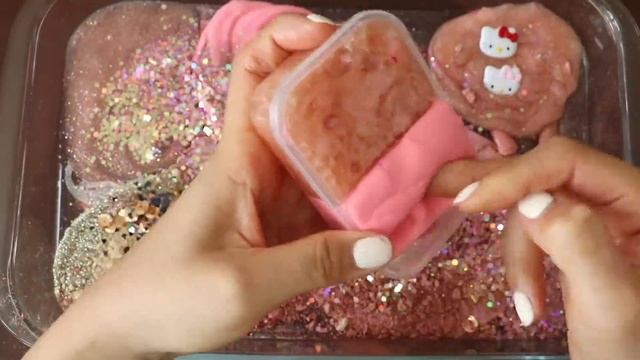 СЛАЙМ - Смешиваем тени для век «Розовое золото Китти» и макияж, детали, блёстки в слайм! Увлекательн