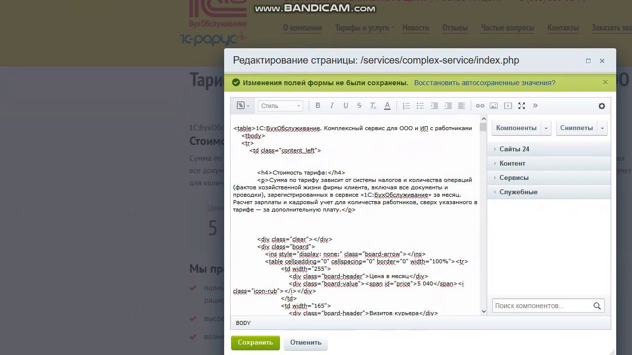 Удалить калькулятор тарифа в описании.