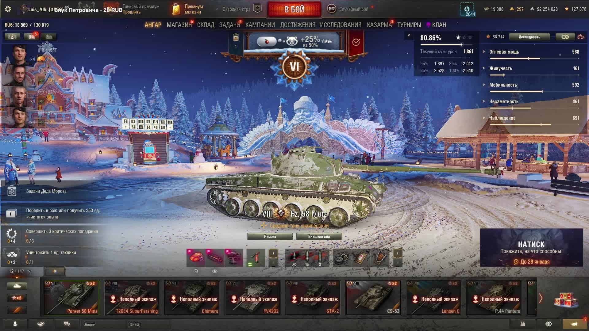 Мир Танков. Натуралы в танки не играют. 3 отметки на Pz. 58 Mutz. Старт 80,86%