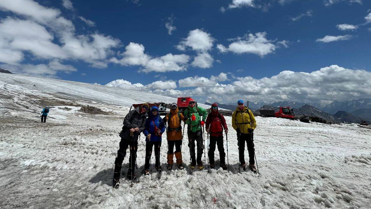 Группа Клуба 7 Вершин «7Я» на снежно-ледовых занятиях на склоне Эльбруса
