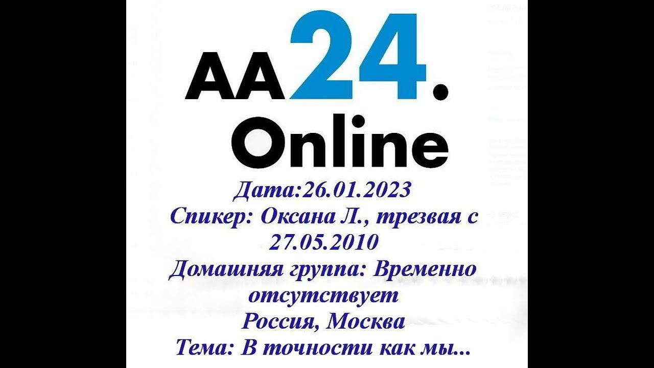 26.01.2023 Оксана Л., трезвая с 27.05.2010 Россия, Москва ТЕМА: В точности как мы...