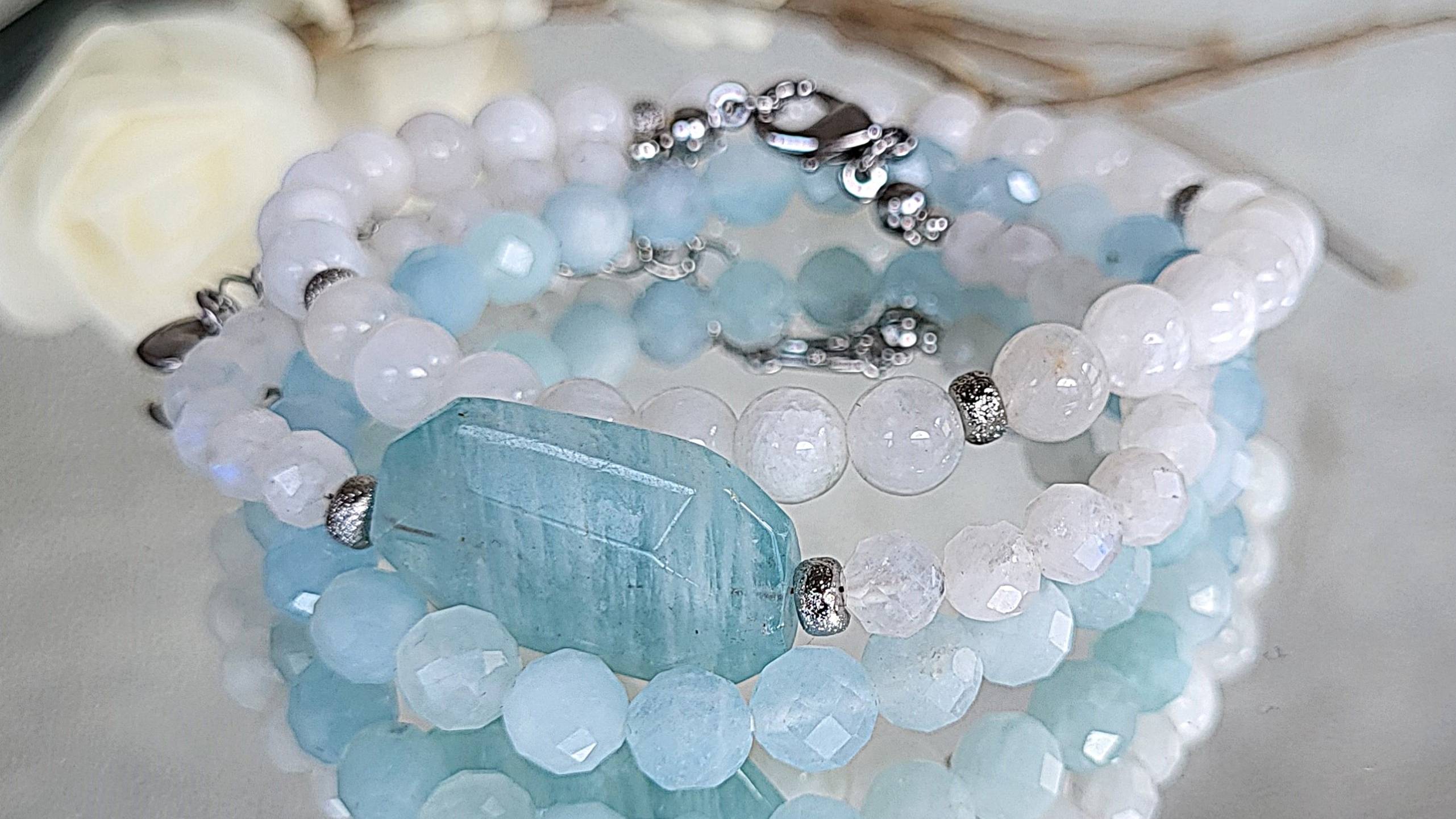 Сет браслетов из аквамарина, лунного камня