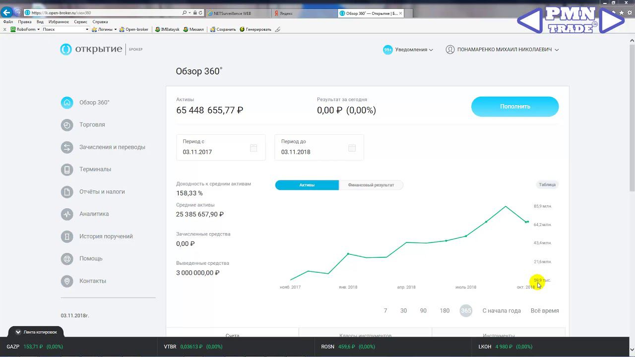 Доход +65 млн. за год. Видео ЛК брокера.