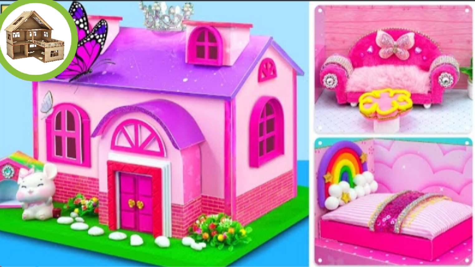 Красивый замок розовой бабочкойдля принцессы | сделай сам миниатюрный картонный домик для кукол