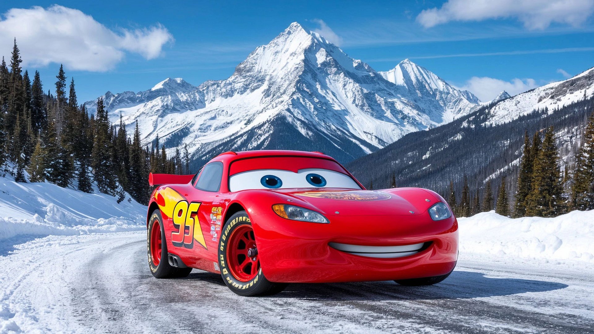Мультик про машинки. Маквин и его друзья катаются по снегу.