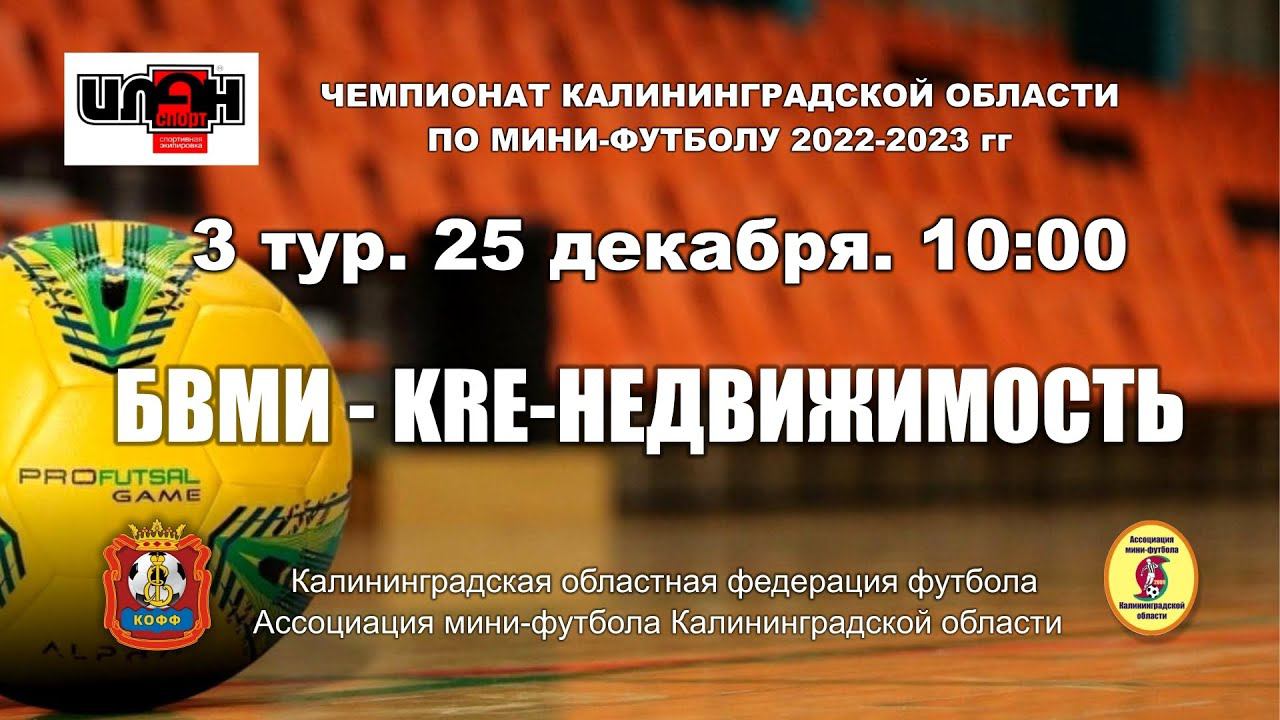 Мини-футбол. Чемпионат Калини нградской области. Суперлига. 3-й тур. БВМИ - KRE-Недвижимость