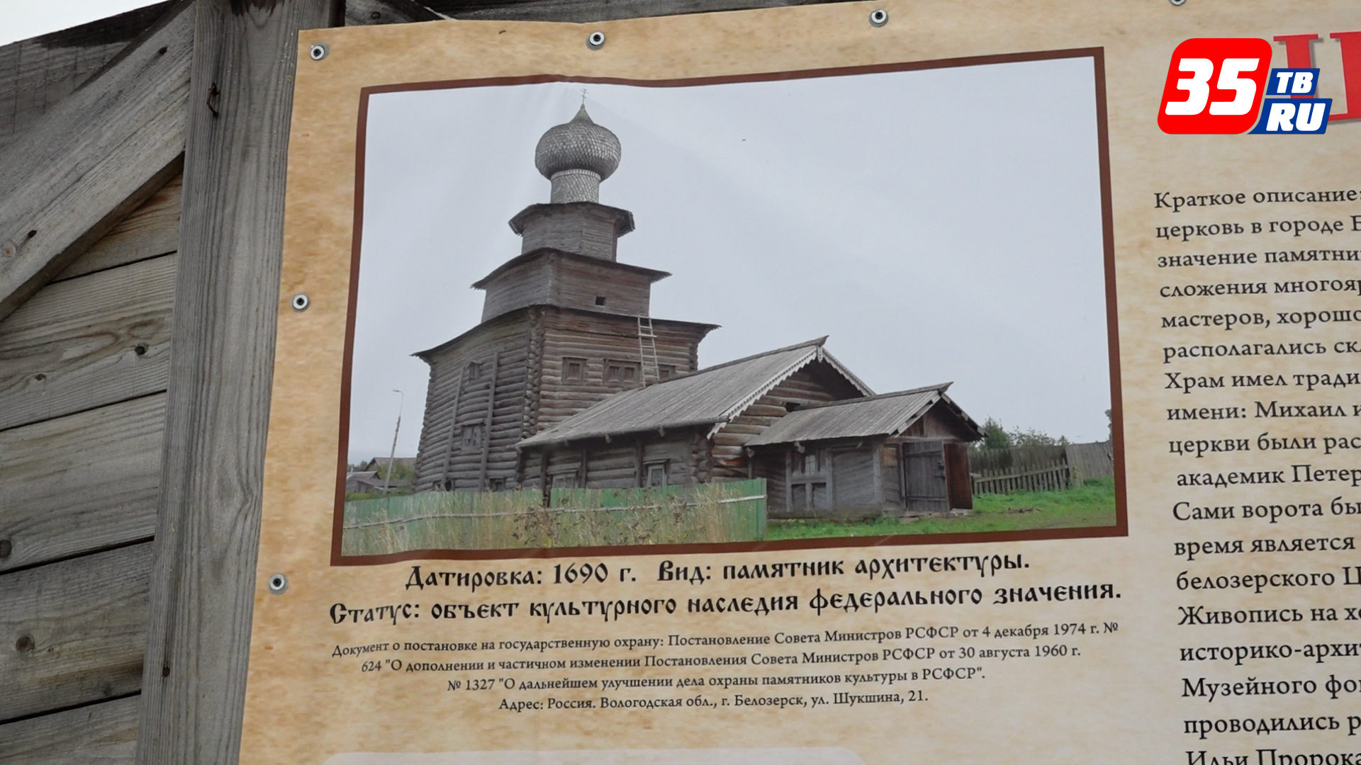 В рамках своего рабочего визита в Белозерск храм посетил врио губернатора Георгий Филимонов. Это единственная деревянная церковь, которая сохранилась в городе. Здание построено в конце XVII века и является объектом культурного наследия федерального значения. В интерьерах храма сохранилась уникальная живопись. Со следующего года здесь стартует полный комплекс реставрационных работ. Объект будет служить в качестве уникальной исторической музейной площадки. Также здесь будут проходить церковные службы.