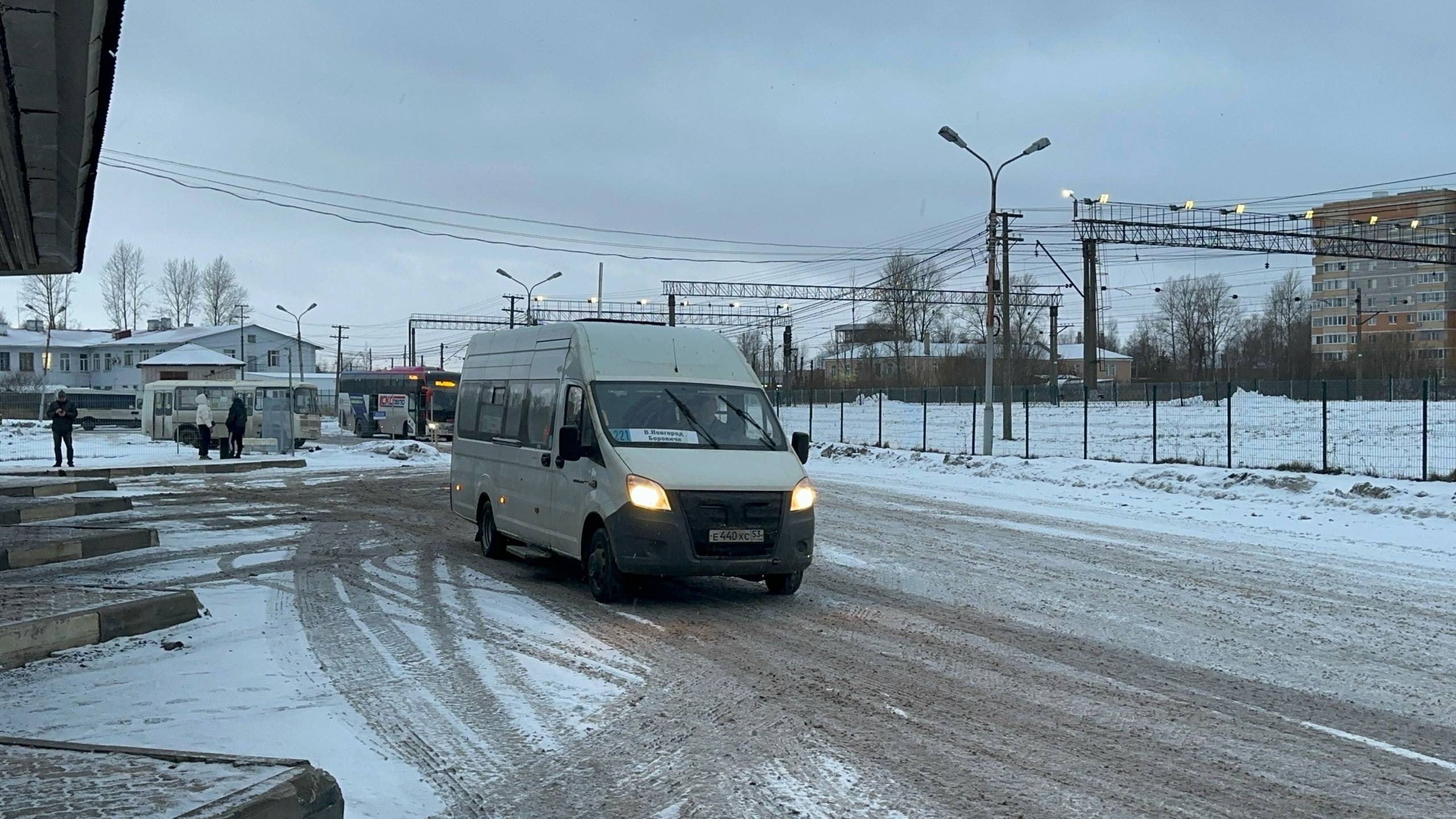 Автобус "ГАЗель Next" ГАЗ-А65R52 №Е440ХС на автовокзале в Великом Новгороде, январь 2025 года