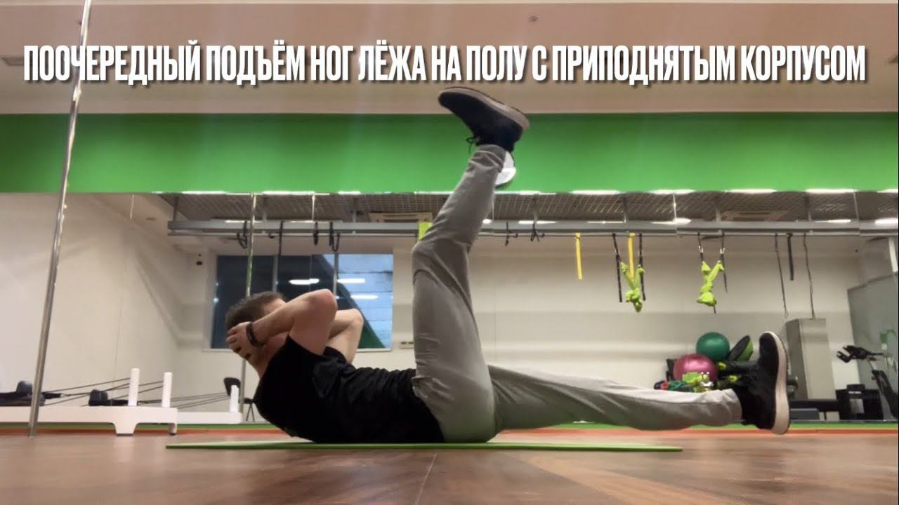 Поочередный подъём ног лёжа на полу с приподнятым корпусом (ALTERNATE LEG RAISES)
