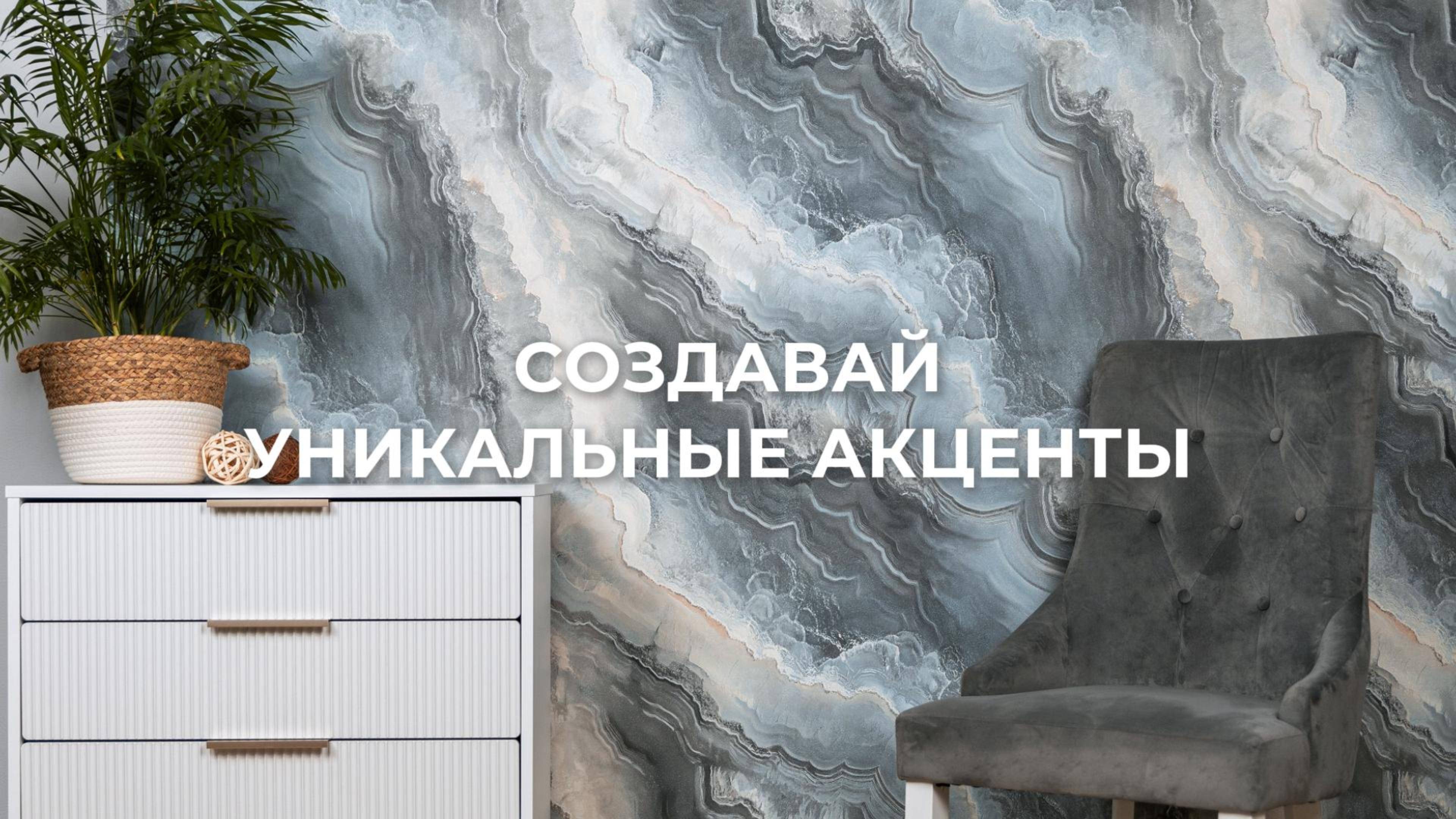 Смелый, монументальный рисунок новой коллекции «Марбл» выполнен безупречно: крупные мраморные разломы впечатляют реалистичностью за счёт тонкой прорисовки и сложных колористических решений. Полутона вспыхивают неожиданной яркостью, а затем утихают, превращаясь в нежную, почти акварельную дымку. Перламутровый блеск с лёгким сиянием мягко скользит по поверхности, добавляя полотнам ещё большей реалистичности. Обои кажутся живыми: их текстура притягивает взгляд, заставляя раз за разом всматриваться в тончайшие нюансы. Сатиновая гладкость компаньонов, повторяющих текстуру штукатурки, умиротворяет. Фоновые покрытия не перетягивают внимание, а создают гармоничную атмосферу, где главную роль играет природный камень. Вместе полотна превращают стены в произведение искусства, где величие природы встречается с безупречной дизайнерской точностью.