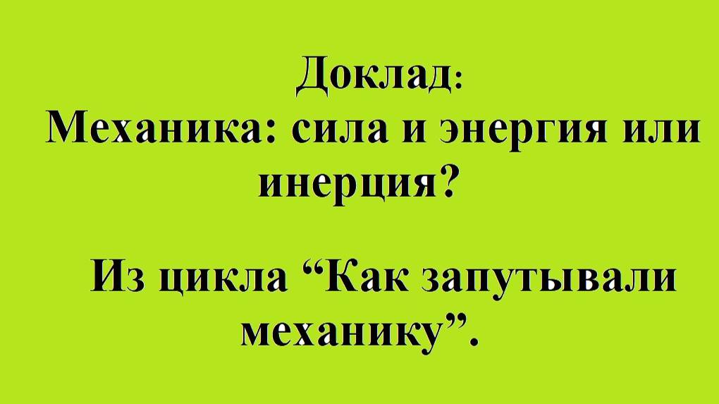 Механика это (сила и энергия) или инерция? Из цикла “Как запутывали механику”.