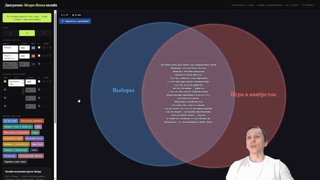 Рассказываю, что такое диаграммы Эйлера-Венна (еще зовут кругами Эйлера) и как их построить с помощью веб-инструмента у меня на сайте: https://semtools.guru/ru/wp-content/uploads/2026/03/venn-builder.html 00:25 Что такое диаграмма Эйлера-Венна 01:57 Как построить простую диаграмму 03:11 Для каких целей создавался инструмент 03:42 Объяснение геометрии с непересекающимися множествами 05:00 когда и почему вместо кругов могут создаваться эллипсы 08:00 Элементы интерфейса для редактирования диаграмм 11:25 Пример с 3 кругами, полное вхождение, каждый круг меньше предыдущего 17:45 Как поделиться диаграммой