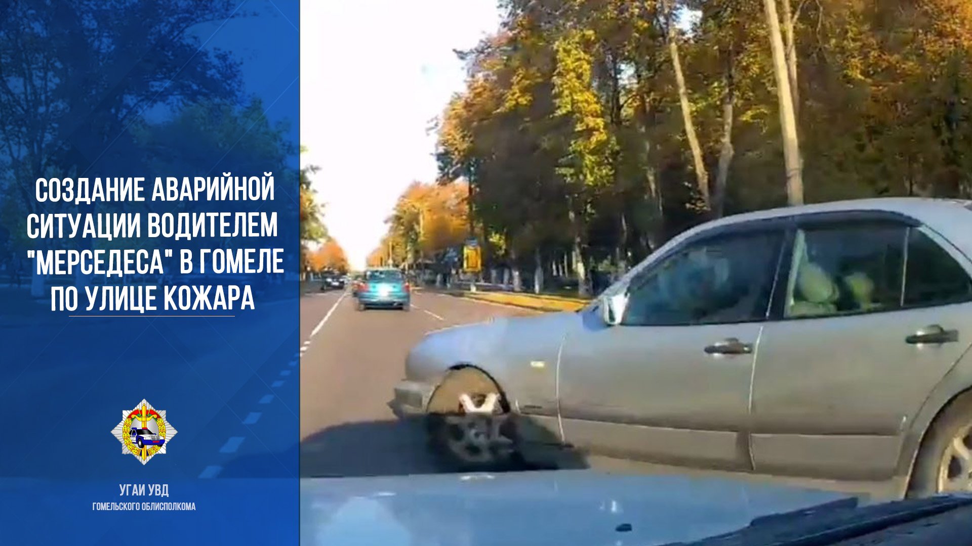 Создание аварийной обстановки водителем "Мерседеса" в Гомеле по улице Кожара