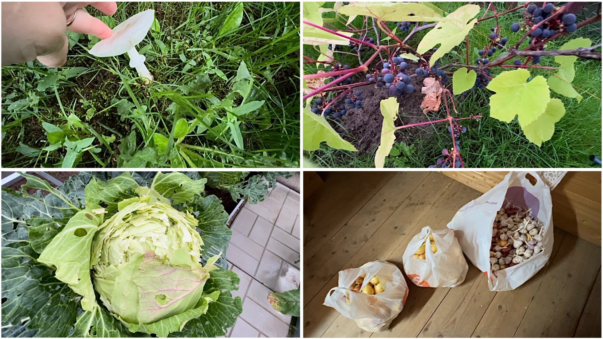 3 сентября. Увожу лук домой. А грибочки растут😁. Лопнула капуста