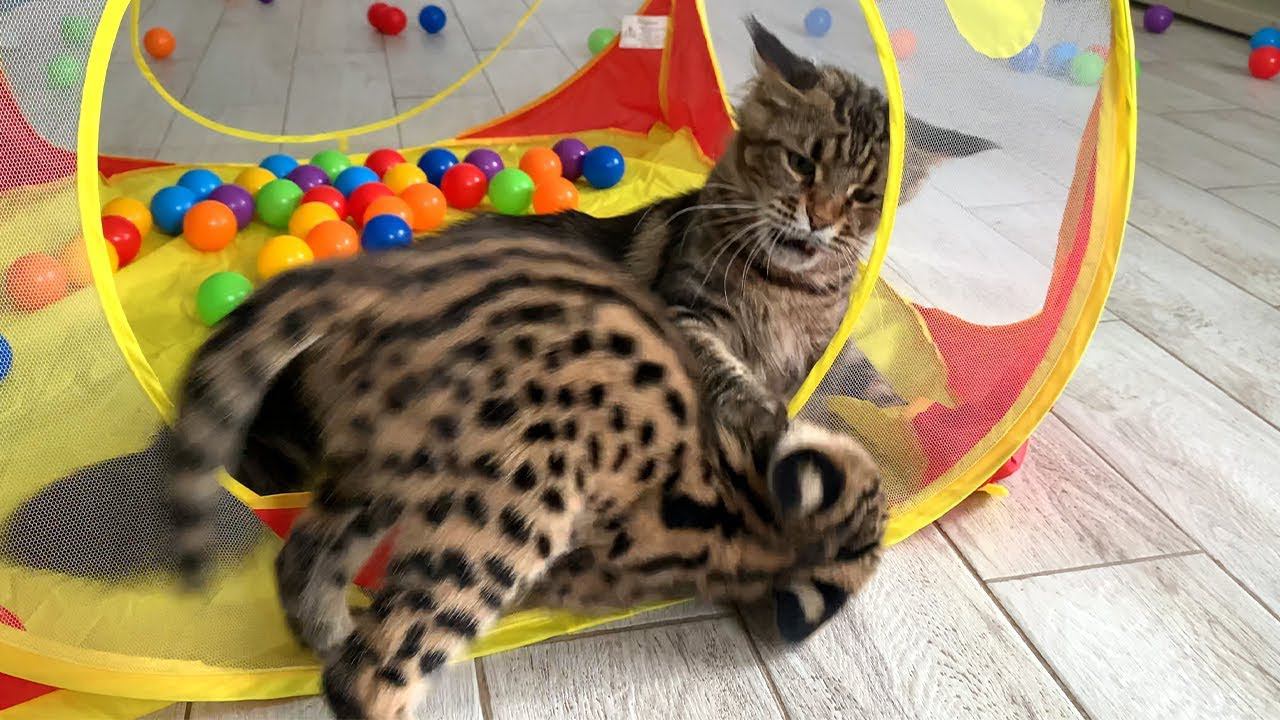 СЕРВАЛ ПОЛУЧИЛ ОТ МИСЫ / Игры и знакомство с мейн-Куном