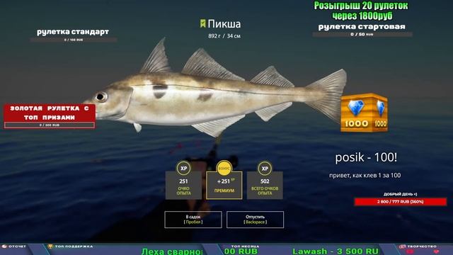 Поддержка донатом https://new.donatepay.ru/@1032463 Альтернативный донат https://www.donationalerts.com/r/kalyamba11 5536913964533059 карта Тинькоф Если стрим лагает,смотри стрим на трово https://trovo.live/s/Kalyamba_na_Ribalke Мой ВК - https://vk.com/kalyantv НИК в игре kalyan11 НАШ ДИСКОРД СЕРВЕР https://discord.gg/pFsEn9e9 Заказ водоема на 1 час - 500р ( весь стрим 2500р ) Модерка на канале 1200р ( каждая следующая на 100р больше) Озвучка доната на 40р,50р,100р,200р,300р,500р,1000р ✅Призы в рулетке "ЗОЛОТАЯ" ✔ ЗОЛОТО ✔ ПРЕМ ✔ КАТУШКИ ЮБИЛЕЙНАЯ БОРЕЛИКА, ВЕНГИ, ТАЙГА, СИЛЬВЕР 80, И другие ✔ ПАЛКИ ПИЛКЕРНАЯ, ДОНКА МОРСКИЕ, ✔ РОД ПОД, СТУЛЬЯ ✅Призы в рулетке СТАНДАРТ : ✔ катушкИ ЮБИЛЕЙНАЯ БОРЕЛИКА, ВЕНГИ, ТАЙГА, СИЛЬВЕР 80, И другие ✔ катушки 60 для медного ( ЭВИИ, НАТОРЫ, ГОЛДА, и тд) ✔ ПИЛКЕРНОЕ УДИЛИЩЕ КОРОЛЕВА ОКЕАНА ✔ Морское Донное удилище ✔ прем ( 3, 7, 30 дней) ✔ золото ( 1, 3, 5, 10, 20 ,50) ✔ билет на море ( 1, 3, 5 дней) ✔ голд наживка и др. ✅Призы в рулетке "СТАРТОВАЯ" ✔ катушка "silver80" ✔ катушка "БЕЛЫЙ КАЛИБР" ✔ катушка "Черный калибр" ✔ катушка "Протон" ✔ катушка "Нарга 6000" ✔ Набор Фидерист и спинингист ✔ Карповик Фортуна ✔ фидерные удилища ✔ прем, золото, алкашка, наживки и тд P.s Рулетка это не казино, а награда за поддержку стримера. Вечный ТОП ПОДДЕРЖКИ (11.05.2024) 1. Dimon_pokemonchik 119 784 2. Interceptor 75 508 3. Skreb79 71 261 4. une personne 68 619 5. Нарвал77 31 550