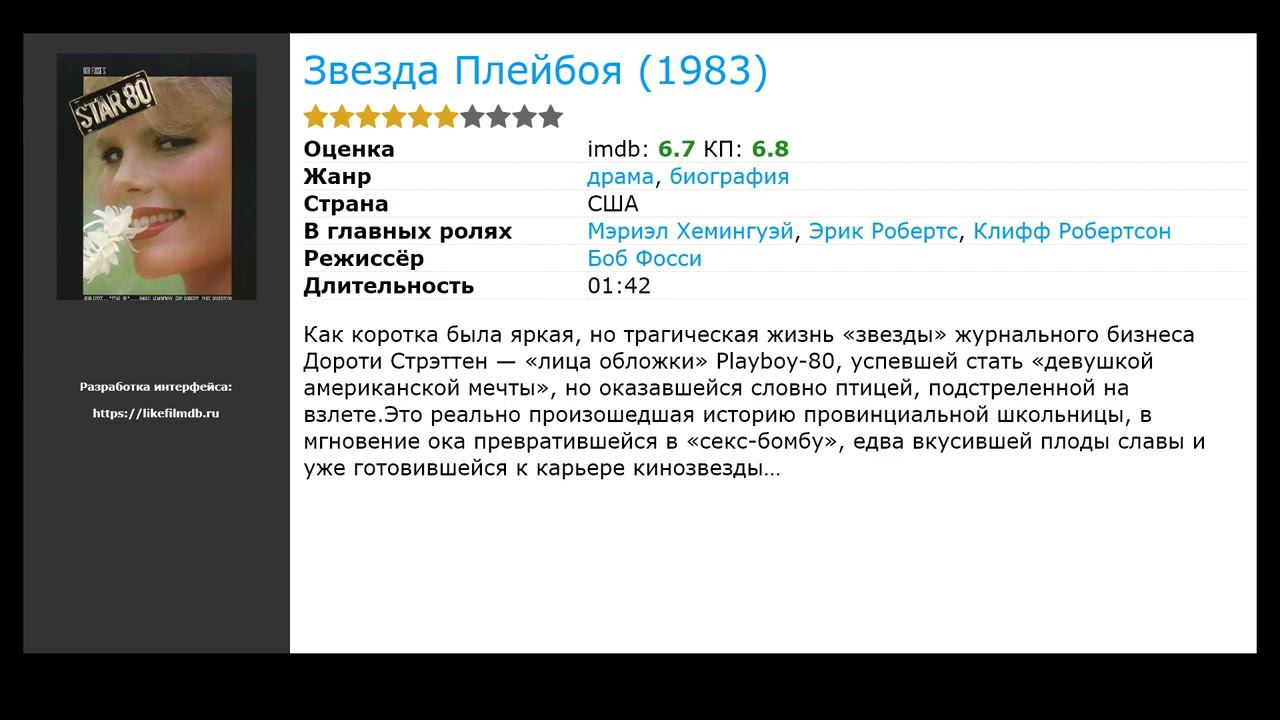 Список фильмов, которые по мнению зрителей похожи на Тревожный звонок (2021): 00:00 Вступление 00:10 Круг (2015) / жанр: ужасы, фантастика, триллер / в главных ролях: Майкл Нарделли, Аллегра Мастерс, Молли Джексон 00:54 Клаустрофобы 2: Лига выживших (2021) / жанр: триллер / в главных ролях: Тейлор Расселл, Логан Миллер, Дебора Энн Уолл 01:07 Незваный гость (2020) / жанр: триллер, детектив / в главных ролях: Ким Му Ёль, Сон Чжи Хё, Йе Су Чжон 01:26 Комната (2021) / жанр: триллер, драма / в главных ролях: Гвидо Каприно, Камилла Филиппи, Эдоардо Пеше 01:39 Охота (2020) / жанр: боевик, комедия, триллер / в главных ролях: Бетти Джилпин, Хилари Суэнк, Айк Баринхолц 01:52 Секрет (2020) / жанр: драма, мелодрама / в главных ролях: Кэти Холмс, Джош Лукас, Джерри О’Коннелл 02:05 Экзамен (2009) / жанр: триллер, детектив / в главных ролях: Адар Бек, Джемма Чан, Натали Кокс 02:31 В земле (2021) / жанр: триллер, детектив / в главных ролях: Джоэль Фрай, Эллора Торчия, Рис Шерсмит 02:44 Время (2021) / жанр: триллер, драма, детектив / в главных ролях: Гаэль Гарсиа Берналь, Вики Крипс, Руфус Сьюэлл 03:00 Гренландия (2020) / жанр: боевик / в главных ролях: Джерард Батлер, Морена Баккарин, Роджер Дэйл Флойд 03:13 Звезда Плейбоя (1983) / жанр: драма, биография / в главных ролях: Мэриэл Хемингуэй, Эрик Робертс, Клифф Робертсон 03:26 Взвод (1986) / жанр: драма, биография / в главных ролях: Том Беренджер, Уиллем Дефо, Чарли Шин 03:39 Допинг (1988) / жанр: драма, мелодрама / в главных ролях: Джеймс Вудс, Шон Янг, Джон Капелос 03:58 Прощайте, мистер Чипс (1969) / жанр: мюзикл, драма, мелодрама / в главных ролях: Питер О’Тул, Петула Кларк, Майкл Редгрейв 04:17 Мулен Руж (2001) / жанр: мюзикл, драма, мелодрама / в главных ролях: Николь Кидман, Юэн МакГрегор, Джон Легуизамо 04:49 Женская компания (1971) / жанр: боевик, драма, криминал / в главных ролях: Лон Чейни мл., Расс Тэмблин, Дженнифер Бишоп 05:05 10 грязных поступков (2005) / жанр: комедия / в главных ролях: Майло Вентимилья, Лейси Чаберт, Том Амандес 05:19 Ной (2014) / жанр: драма, приключения, фэнтези / в главных ролях: Рассел Кроу, Дженнифер Коннелли, Рэй Уинстон 05:45 Успеть до полуночи (1988) / жанр: боевик, комедия / в главных ролях: Роберт Де Ниро, Чарльз Гродин, Яфет Котто 06:01 Истории конца света (2021) / жанр: фантастика, боевик / в главных ролях: Джереми Дэш, Sarah Groleau, Эрин Хиндман Теги: Новые фильмы которые уже вышли в хорошем качестве ► Больше похожих фильмов на Тревожный звонок: https://likefilmdb.ru/film/trevozhnyj-zvonok-2021/similar/