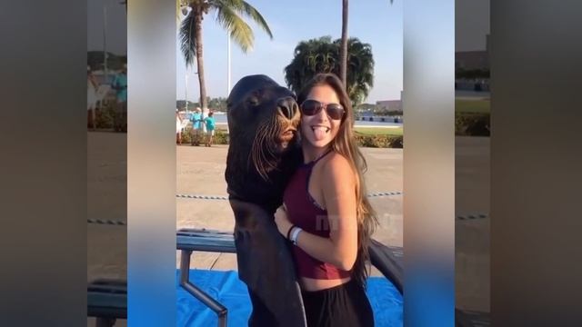 Морской котик, тюлени, животные, селфи с животными, смешное видео