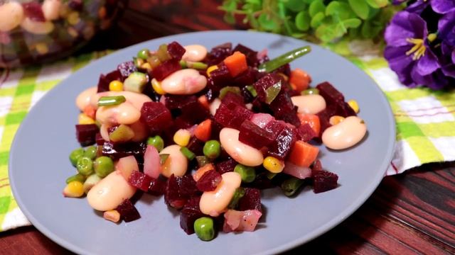 Рецепт салата: свекла вареная - 150 г растительное масло мексиканская смесь - 200 г щепотка соли черный перец зеленый лук консервированная фасоль - 200 г заправить растительным маслом Рецепт №2: вареная свекла - 300 г сахар - 1 ч.л. щепотка соли черный перец яйцо - 1 шт. манная крупа - 2 ст.л. жарить на растительном масле подавать со сметаной