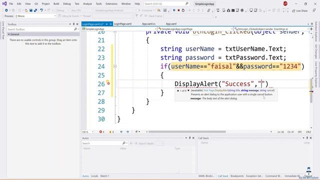 Login Page Functional Feature with Display alert in Xamarin Forms | How to make Popup