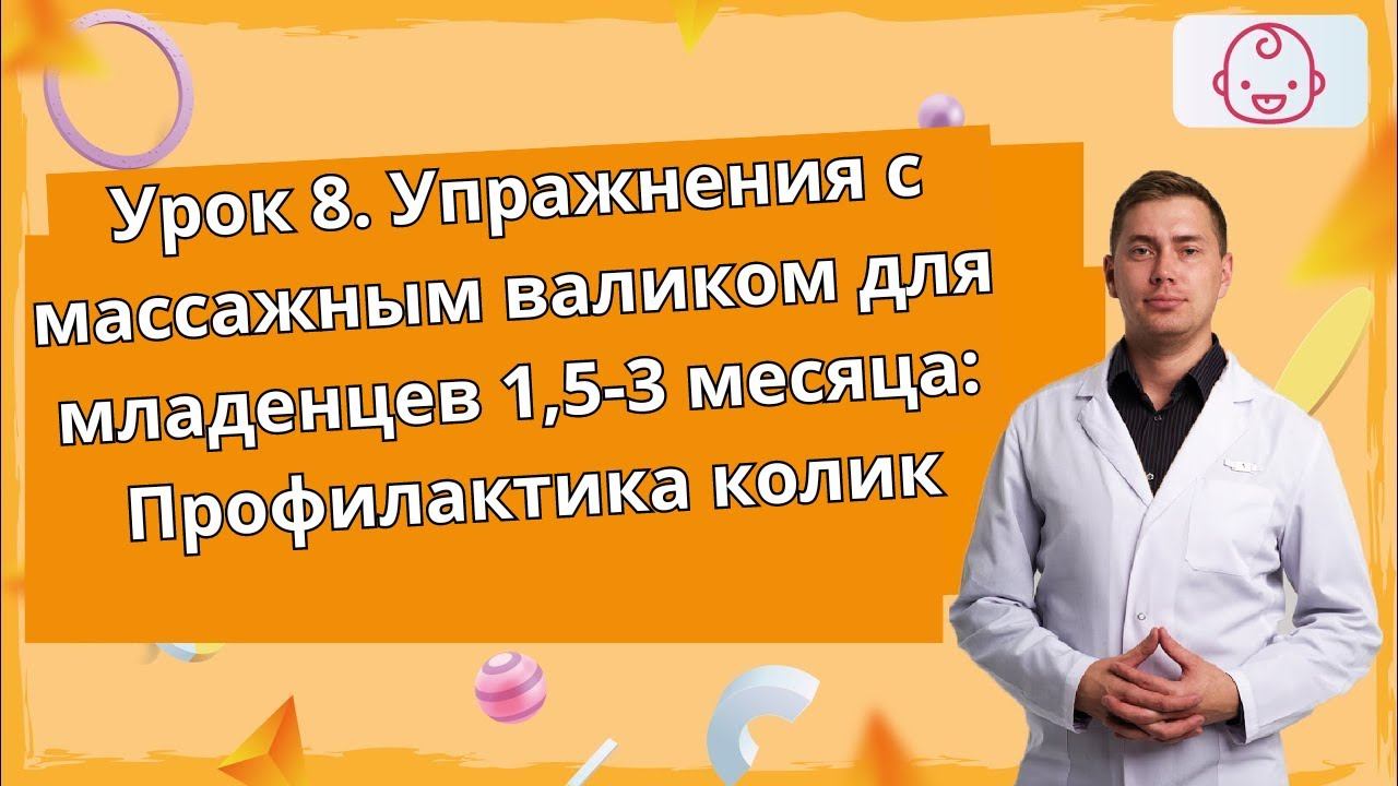 Урок 8. Развивающие упражнения с массажным валиком для младенцев 1,5-3 месяца: Профилактика колик