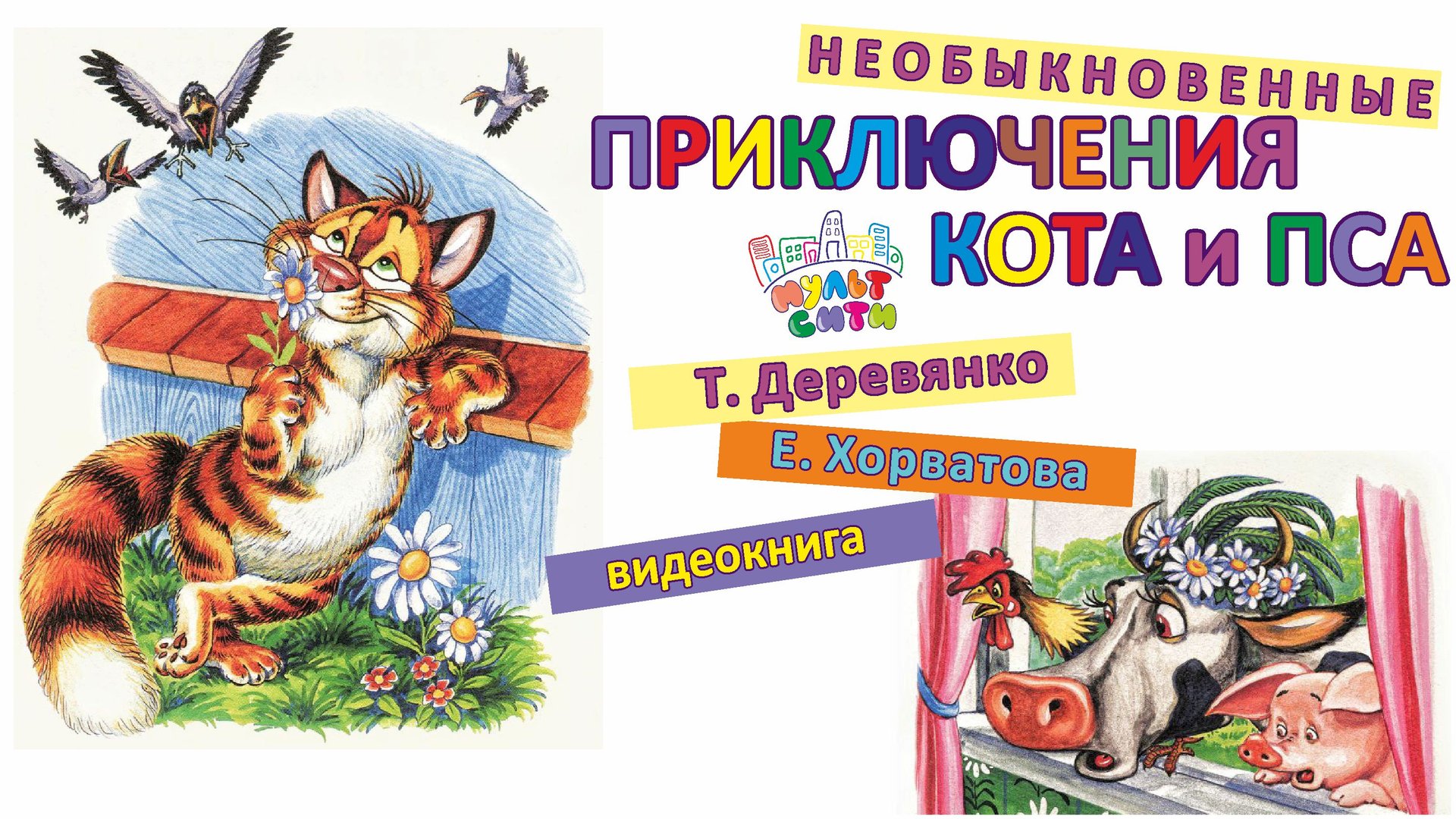 ПРИКЛЮЧЕНИЯ КОТА И ПСА / Как кот ворон считал / Т.Деревянко, Е Хорватова / ВИДЕОКНИГА для детей