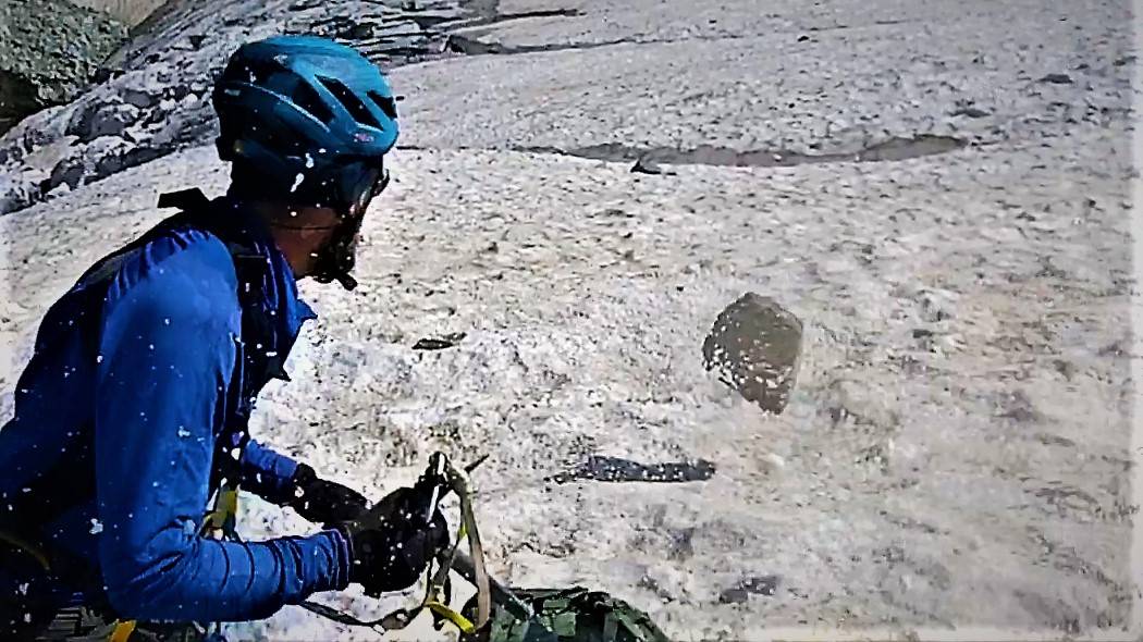 Камнепад в походе, булыжник пролетел рядом с альпинистом, Опасные горы Росси