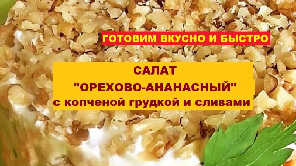 Салат ОРЕХОВО-АНАНАСНЫЙ с копченой грудкой и сливами. ГОТОВИМ ВКУСНО И БЫСТРО