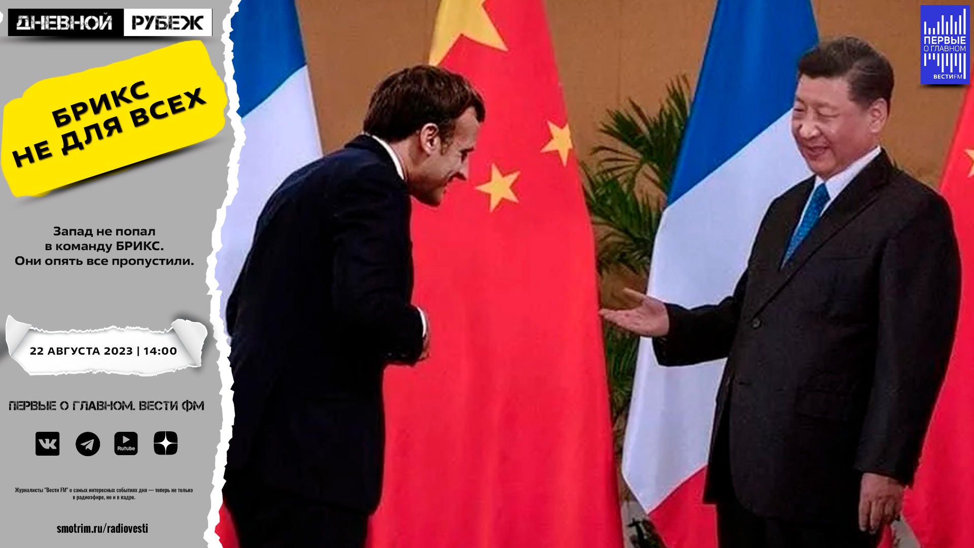 #дневнойрубеж #первыеоглавном #сво #донбасс #спецоперация #украина #деньфлага #всу #расстрел #брикс #юар #диггеры #лавров #сша #китай #байден #гаваи #макрегор #писториус #скоттриттер #финляндия################# Запад не попал в команду БРИКС. Они опять все пропустили. ?Подписывайтесь на Telegram канал - Первые о главном: https://t.me/vestifmfirst ?Подписывайтесь на Rutube канал - Первые о главном: https://rutube.ru/channel/24115140/ ?Подписывайтесь на VK канал - Первые о главном: https://vk.com/first.vestifm ?Подписывайтесь на ДЗЕН канал - Первые о главном: https://zen.yandex.ru/id/5fc4960a799d1b24b5be5189 ?Подписывайтесь на Telegram канал - ВестиFM+: https://t.me/s/vestifmplus СМОТРИТЕ НАС НА ПЛОЩАДКЕ СМОТРИМ: https://smotrim.ru/channel/365