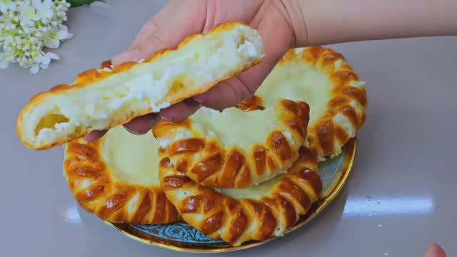 ? ингредиенты: - молоко 200мл - сахар - щепотка соли - яичный белок 1шт - дрожжи 15гр - подс. масло 50мл - мука 400гр+/- ?начинка: творог 300гр сахар 50гр крахмал 1с.л. сметана 250гр ванильный сахар 100гр сверху смазать яичным желтком.