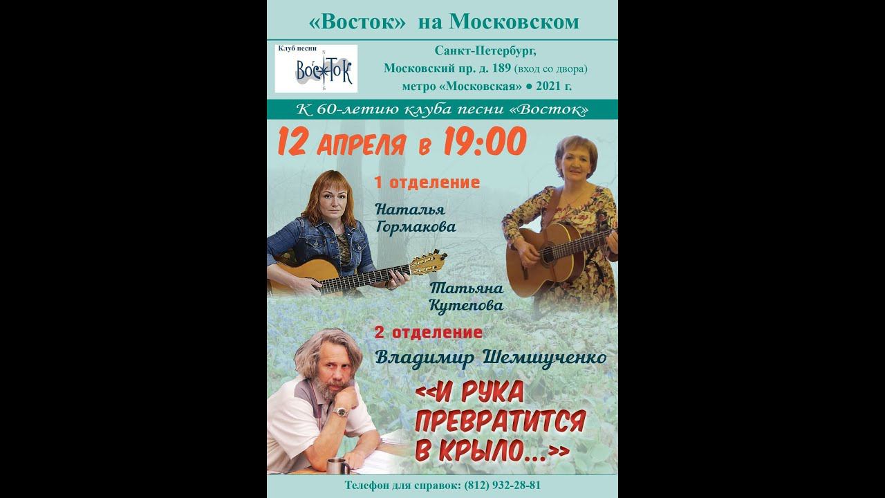 Татьяна Кутепова, Наталья Гормакова, Владимир Шемшученко в клубе песни «Восток». Ведущий - Валентин Вихорев. Первый концерт к 60-летию клуба песни «Восток». 12 апреля 2021 г. Санкт-Петербург, Московский пр., д. 189. Видеозапись - Алла Левитан.
