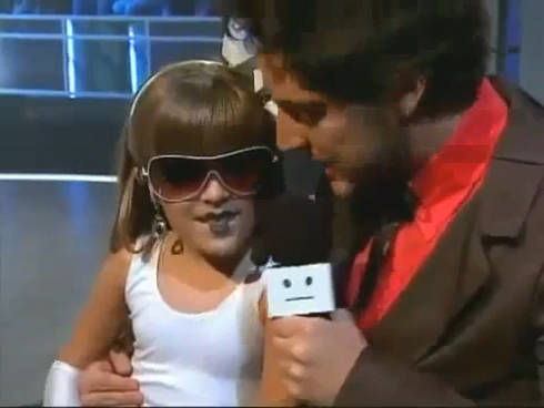 Девочку зовут Лаура Фонтана, ей 8 лет. Это фрагмент телешоу с ее выступлением. Лаура старается выглядеть максимально как Леди Гага. Плюс она еще и поет!:)