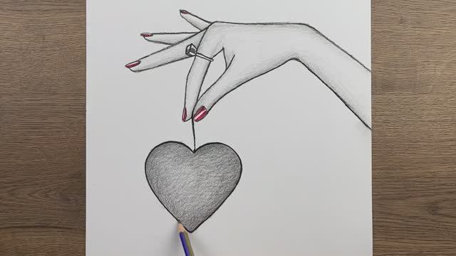 Простые рисунки карандашом, как нарисовать руку, держащую сердце, пошаговый урок рисования