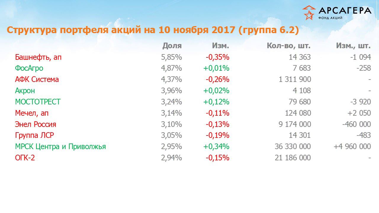 Наши фонды. Арсагера – фонд акций. #193 с 27.10.17 по 10.11.17