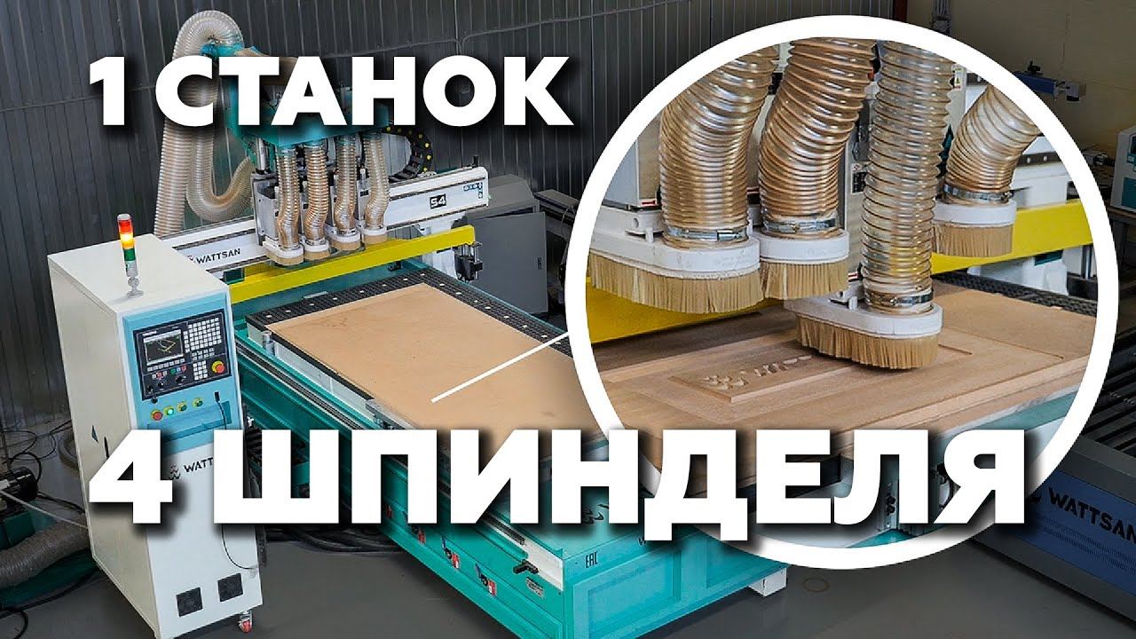 Фрезерный станок c ЧПУ по дереву, 4 шпинделя. Фрезер, автосмена инструмента. Обзор Wattsan M4S 1325