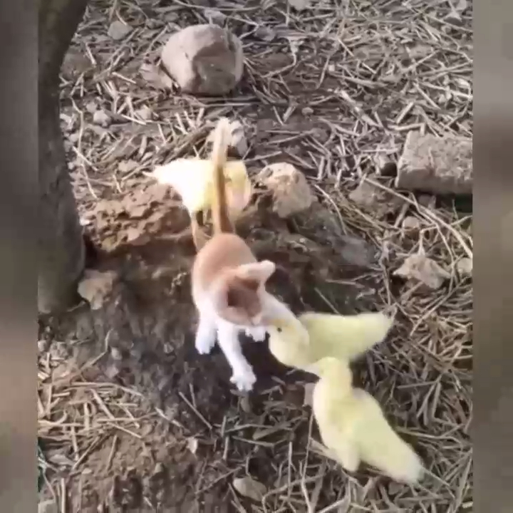 Утята атакуют котёнка