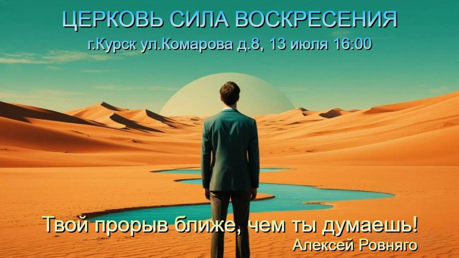 ТВОЙ ПРОРЫВ БЛИЖЕ, ЧЕМ ТЫ ДУМАЕШЬ! | Алексей Ровняго | ВОСКРЕСНОЕ БОГОСЛУЖЕНИЕ | 13.07.2025 Богослужение церкви Сила Воскресения г.Курск Пасторы Александр и Ольга Мунтеану приглашают вас посетить богослужения. В МОСКВЕ КАЖДУЮ СУББОТУ В 16:00 г. Москва, Пролетарский проспект, 24. Станция метро Кантемировская, 3-й выход. Кирпичное 4-ех этажное здание. Вход во двор свободный. Подняться на 3-й этаж. Телефон для информации: +7 (999) 606-76-90 Дмитрий В КУРСКЕ КАЖДОЕ ВОСКРЕСЕНЬЕ В 16:00 Курск, улица Комарова, дом 8. Отдельный вход (левая часть здания). Телефон для информации: +7 (930) 850-27-00 Алексей