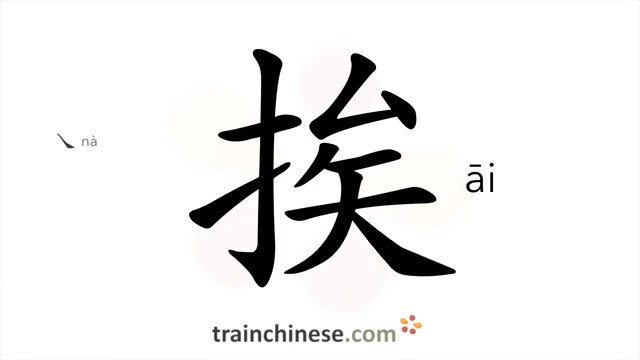 挨 (āi) next to; in order, in sequence; to suffer from; endure; get close to; drag out