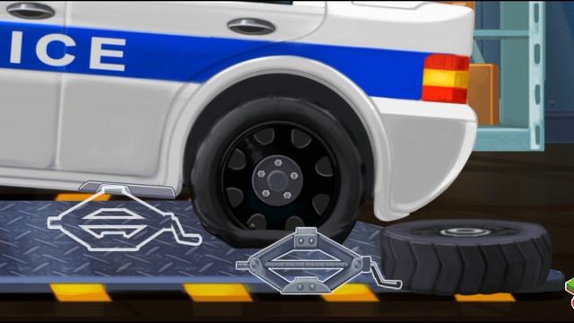 Весело чиним полицейскую машинку. Качаем колесо, меняем колесо, меняем масло.