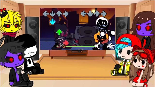 FNF React to Friday night funkin mod SKID & PUMP VS EVIL PICO | part 1 | gacha club