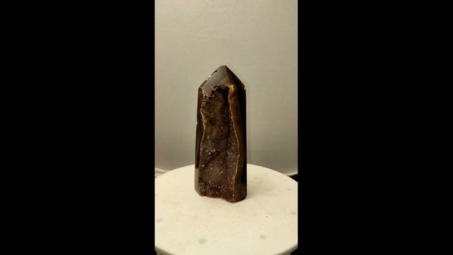 минерал Агат черный с аметистовой жеодой Месторождение: Бразилия Вес: 405г Размеры (ГxШxВ): 3х6х15см Интернет магазин "Удивительное в камне" www.gemworld.store