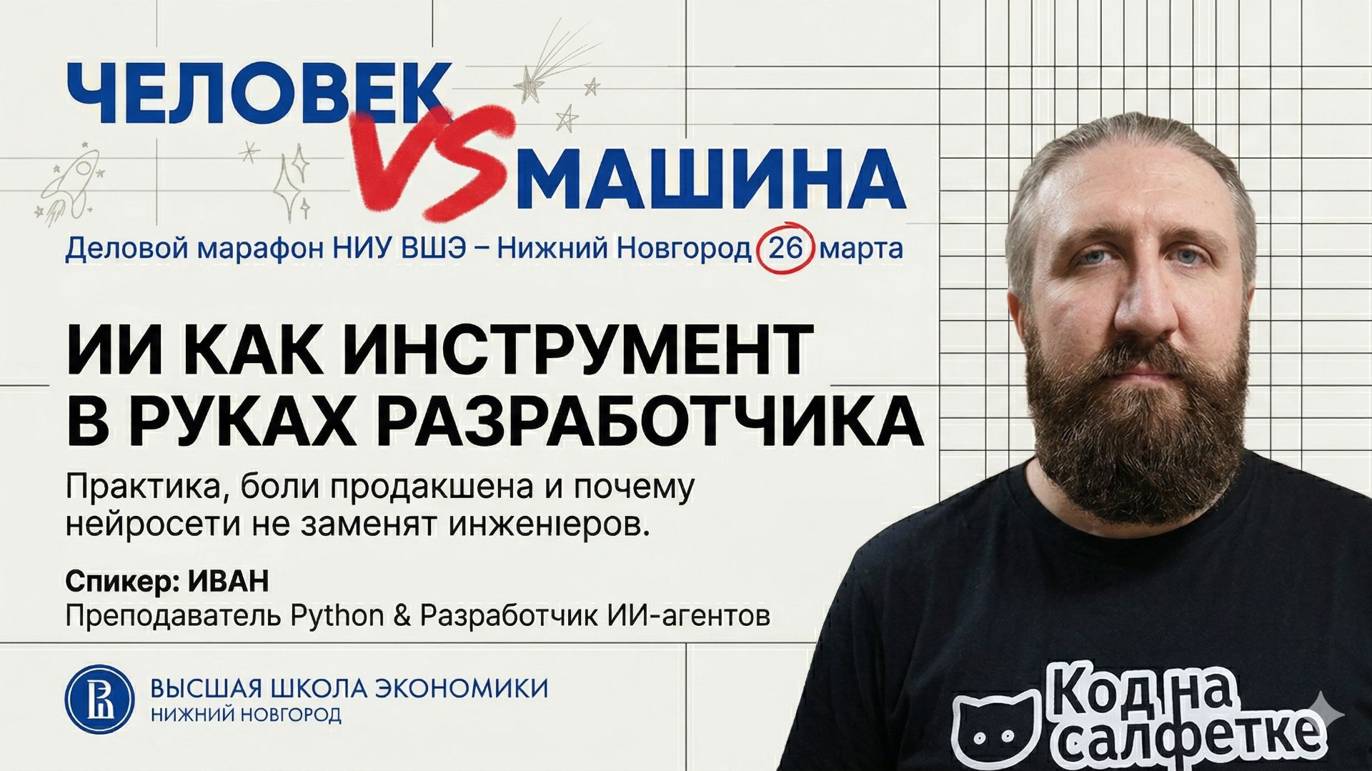 В этом видео разбираем главную IT-страшилку последних лет — заменят ли искусственный интеллект и нейросети живых разработчиков? Я на реальных примерах показываю, как ИИ меняет процесс продуктовой разработки. Поговорим о том, почему нейросети — это продвинутый поисковик по чужому опыту, а не волшебная таблетка. В этом докладе вы узнаете: 🔸 Почему маркетологи врут о том, что «программисты больше не нужны». 🔸 Проблему будущего: если ИИ забирает работу джунов, откуда на рынке появятся мидлы и сеньоры? 🔸 Боль «вайбкодинга»: разбираем неподдерживаемого монстра-Франкенштейна на 5000 строк в одном файле, который был написан исключительно нейросетью и теперь лагает в продакшене. 🔸 Практику применения ИИ: как использовать нейросеть в качестве «умного подмастерья» для рутины. 🔸 Live-демо: декомпозируем задачи и внедряем новую схему БД в проект SmetApp с помощью Google Antigravity и Gemini 3.1. Главное правило: вы должны легко понимать код, который вам сгенерировали, иначе технический долг неизбежен! 👇 Полезные ссылки: • Карьерный центр НИУ ВШЭ – НН: https://t.me/hsecareernn • Основной канал Вышки: https://t.me/hse_nnov • IT-академия Lad: https://t.me/lad_it_academy 💬 А вы уже используете нейросети для написания кода? Сталкивались с проблемами «вайбкодинга»? Пишите свой опыт в комментариях! Код на салфетке: https://t.me/napkincode Сайт: https://pressanybutton.ru/