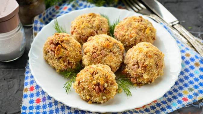 Быстрая и простая горячая закуска - хлебные шарики с колбасой и сыром, запечённые в духовке. Для рецепта можно использовать любые остатки вчерашнего белого хлеба. Хлебный мякиш замачиваем в молоке и смешиваем с колбасой и сыром. Из полученной массы формируем шарики, обваливаем в панировочных сухарях и запекаем до хрустящей корочки. Закуска получается очень оригинальной. #ГорячиеЗакуски #ЗакускиНаПраздничныйСтол #ЗакускиСКолбасой