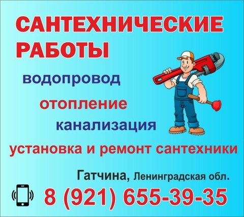 Сантехнические работы в Гатчине. Отопление, водоснабжение, канализация. Предлагаем услуги: - Монтаж и замена труб горячего и холодного водоснабжения. - Отопление в квартире, доме, производственных помещениях. - Установка, подключение и дальнейшее обслуживание сантехники (фильтры на воду, смесители, краны, батареи, бойлер, газовая колонка, стиральная и посудомоечная машина). - Установка счетчиков на воду. - Подключение, обвязка твердотопливных, газовых котлов, бойлеров в т.ч. косвенного нагрева. - Укладка тёплого пола, отопления, монтаж котельной от установки до пуска и наладки системы. - Промывка калорифера, теплообменника не разбирая и не снимая газовую колонку, газовый котёл. - Водоочистка в загородном доме со скважины или колодца: подбор и монтаж системы фильтрации любой сложности по анализу воды. - Сварочные работы: монтаж ИТП, Водомерного узла, розлива, стояков и т.д. - Смета, закупка, доставка материалов. - Долгосрочное обслуживание частных и многоквартирных домов. На больших объёмах работ действует скидка (оговаривается индивидуально), а также работает несколько опытных сантехников. Территория обслуживания: Гатчина, Гатчинский район, Ленинградская область Тел.: 8 (921) 655-39-35 ВКонтакте: vk.com/club154309798 В Интернете (в поисковиках) нас находят, в частности, по таким словам: сантехнические работы Гатчина, сантехник Гатчина, вызов сантехника Гатчина, установка счетчиков на воду Гатчина, укладка тёплого пола Гатчина, монтаж котельной Гатчина, промывка калорифера Гатчина, промывка теплообменника Гатчина, водоочистка в загородном доме Гатчина. #сантехническиеработы #Гатчина #сантехник #вызовсантехника #Гатчинскийрайон #Ленинградскаяобласть #укладкатёплогопола #монтажкотельной