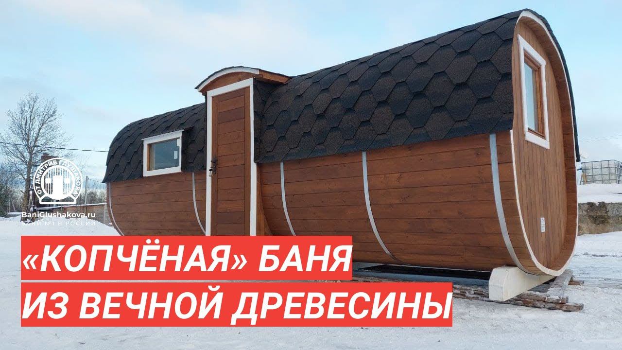 Новая «копчёная» баня-бочка из термодревесины