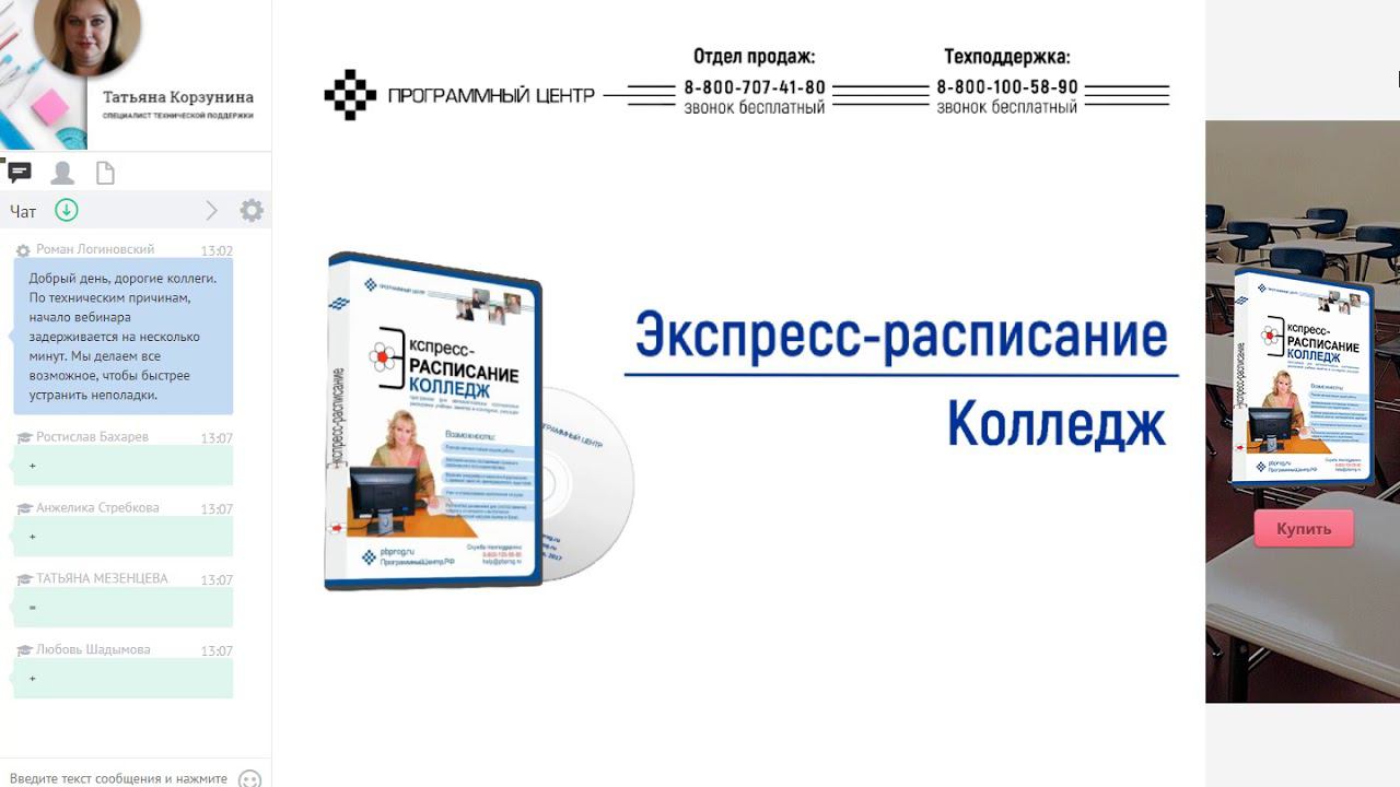Запись вебинара от Программного центра "Помощь образованию" Тема: Составление основного расписания и ведение текущего расписания в колледже с использованием программы "Экспресс-расписание Колледж" Дата проведения: 30.08.2017