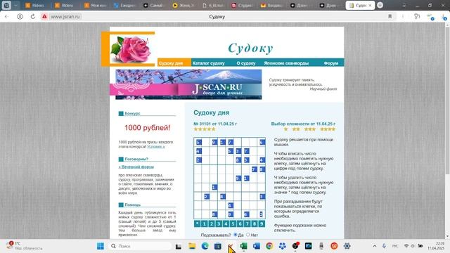 Решение судоку дня (5*) с сайта jscan от 11.04.2025