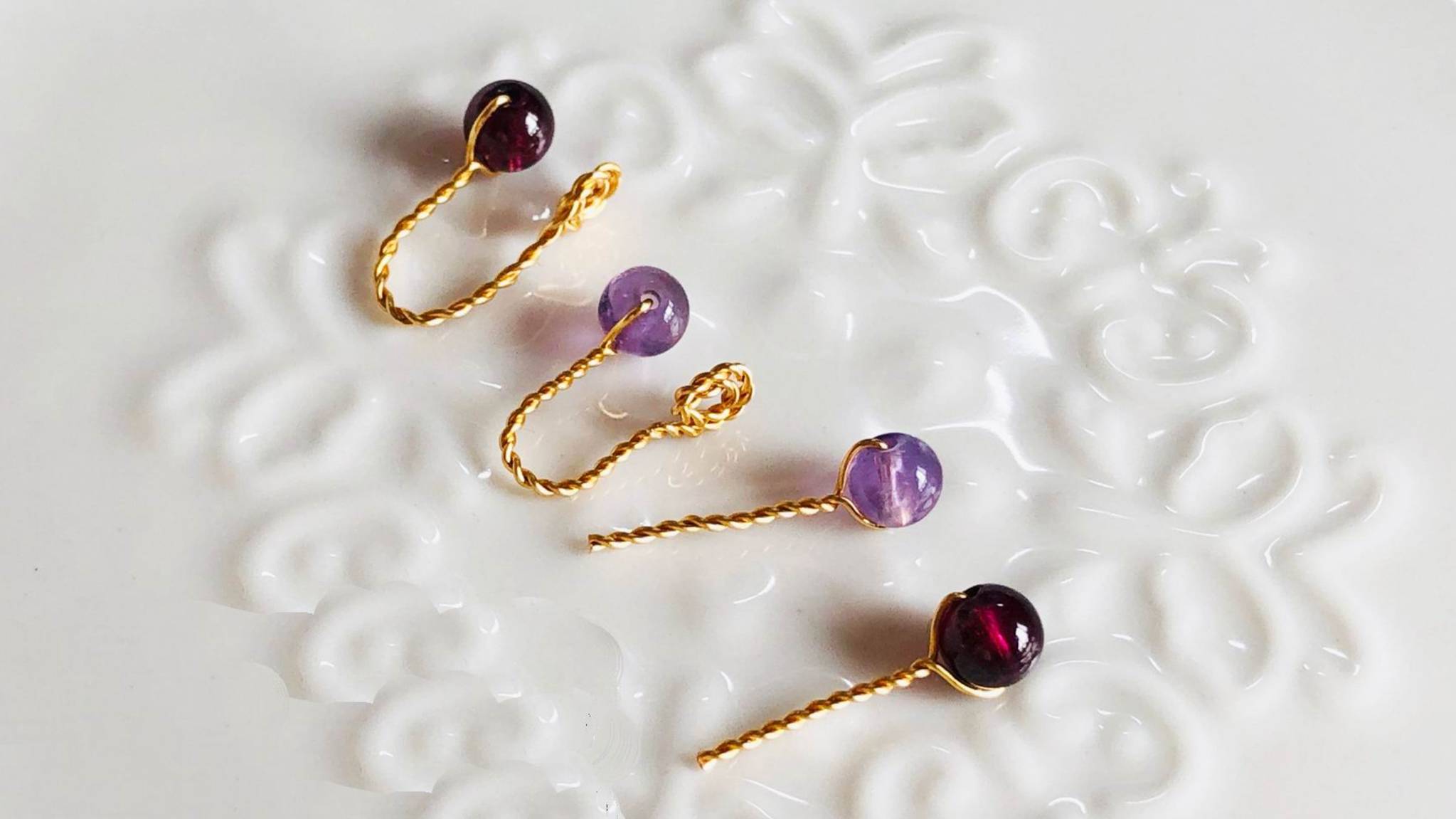Инструменты: плоскогубцы, круглогубцы, кусачки, инструмент для шлифовки концов проволоки. Материалы: медная проволока 0,4 мм, бусины аметиста 3,5 мм (можно заменить на любые другие по вкусу).